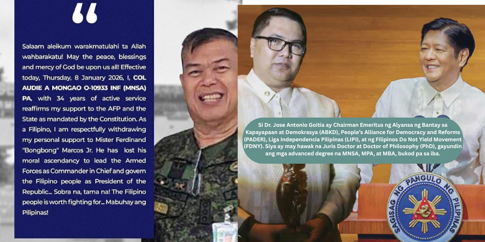 Kapag ang isang aktibong opisyal ng militar tulad ni Audie A. Mongao ay hayagang nagbawi ng personal na suporta sa Pangulong Ferdinand Marcos Jr., hindi ito simpleng usapin ng malayang pagpapahayag.