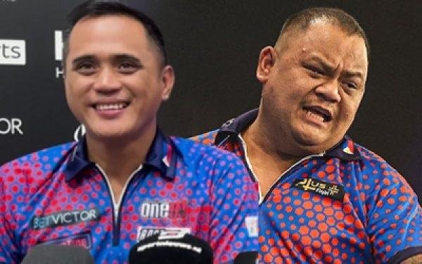 PUMALYANG masaktuhan ang tamang bullseye ng Pinoy tandem nina Lourence “The Gunner” Ilagan at Paolo “Pow” Nebrida matapos patalsikin ng two-time world champion Gerwyn Price at Jonny Clayton sa iskor na 2-8 sa last 16, Linggo ng umaga (oras sa Pilipinas), sa BetVictor World Cup of Darts sa Frankfurt, Germany.
