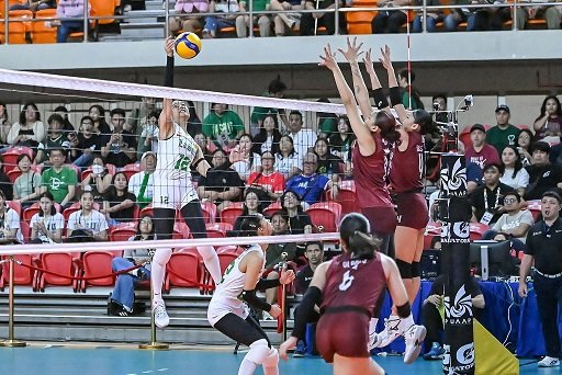 Pinalawig ng Lady Spikers ang kanilang sunod-sunod na walang talo sa ika-10 sunod-sunod na panalo matapos ang kanilang 25-15, 25-18, 25-20 panalo laban sa Fighting Maroons noong Linggo ng Palaspas sa University of Santo Tomas Quadricentennial Pavilion sa Maynila.